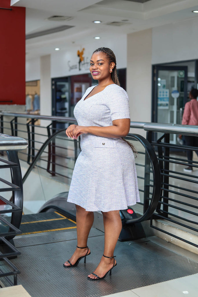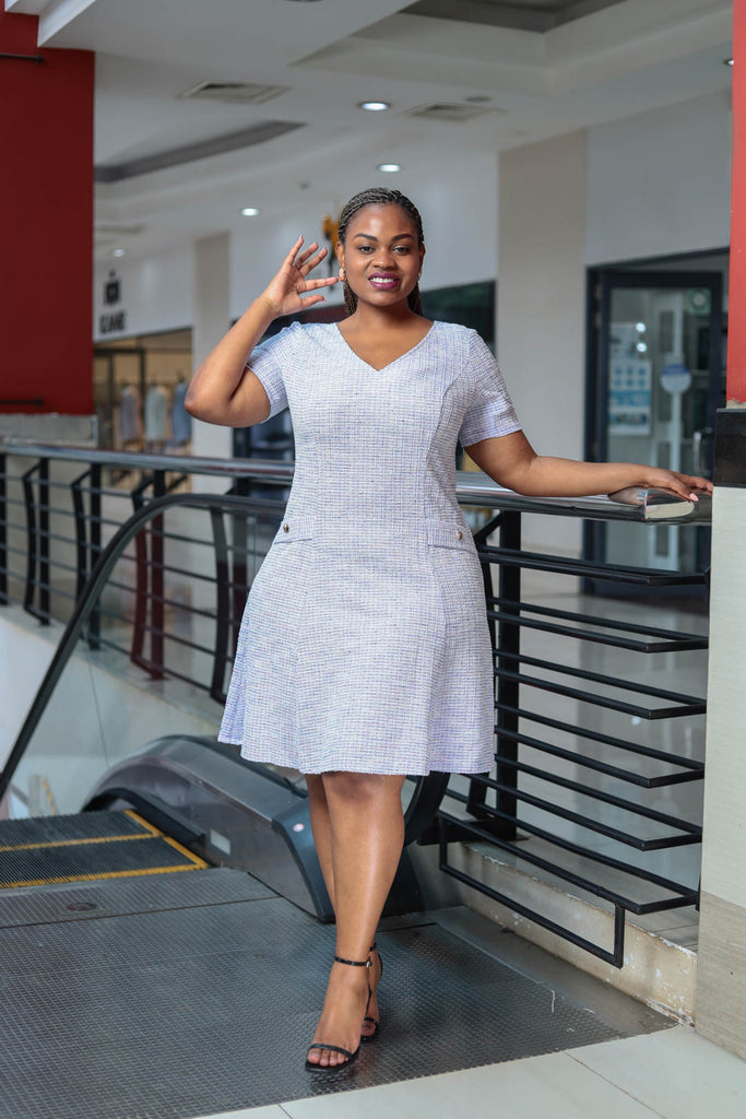 The Lilac V-Neck Shift Dress features a gentle color and clean lines, offering an effortlessly chic and versatile option for both casual and refined occasions.