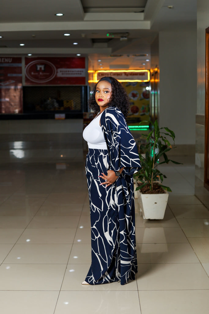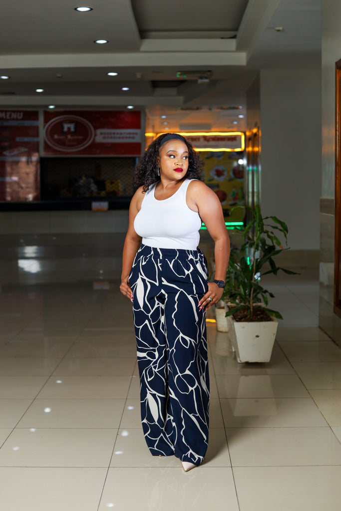 The Navy White Palazzo Set combines classic color contrast with a relaxed, flowing fit, perfect for making a sophisticated yet comfortable style statement.