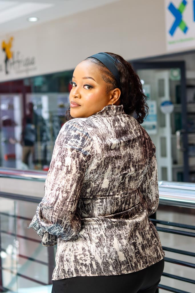 Silk Black Beige Bow v-neck top